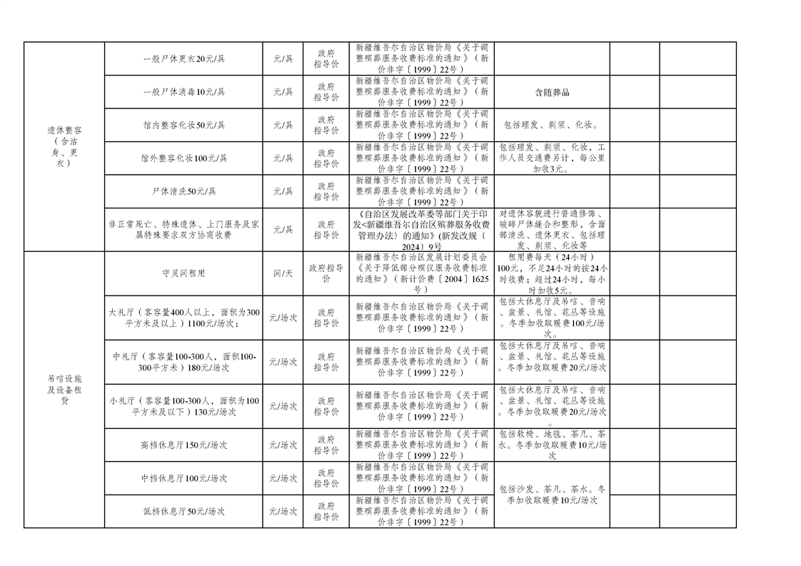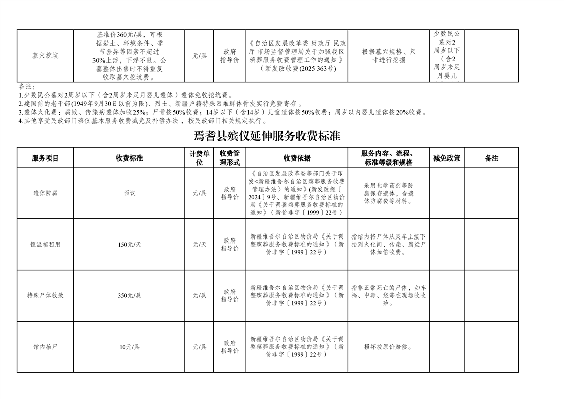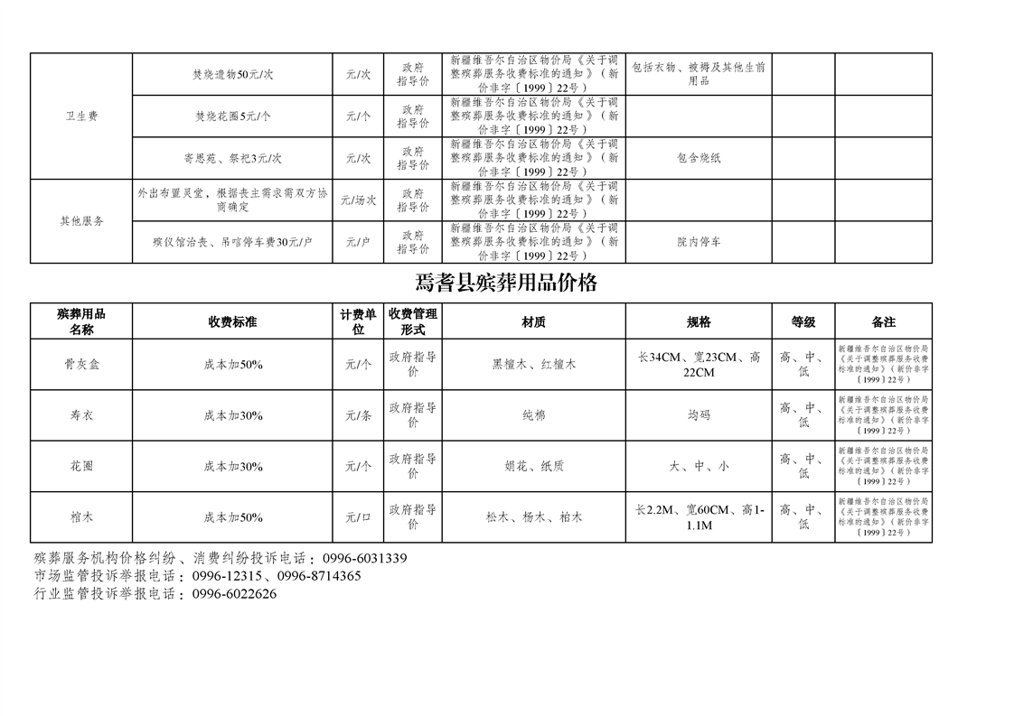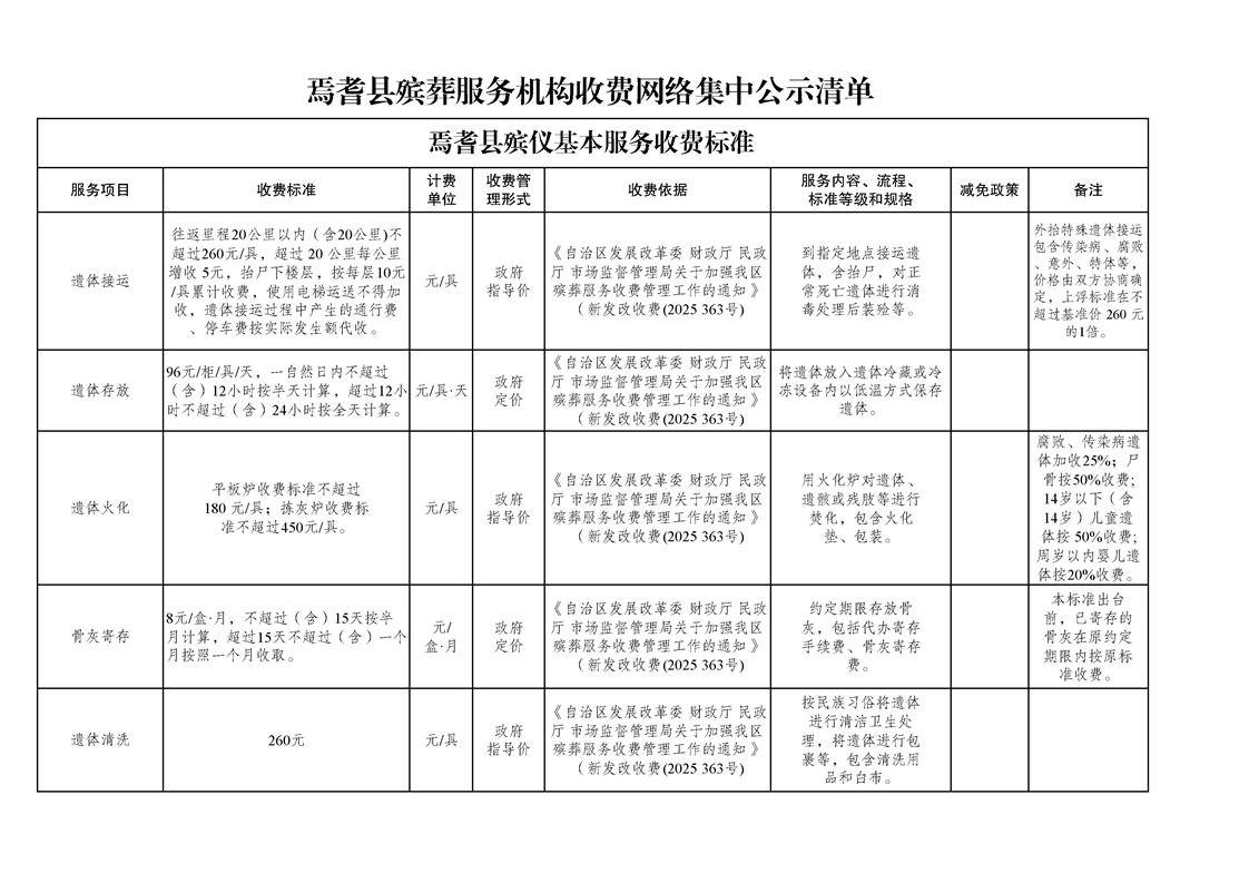焉耆县殡葬服务机构收费网络集中公示清单