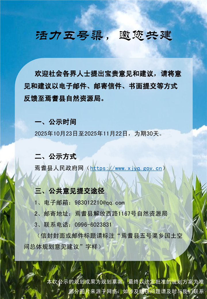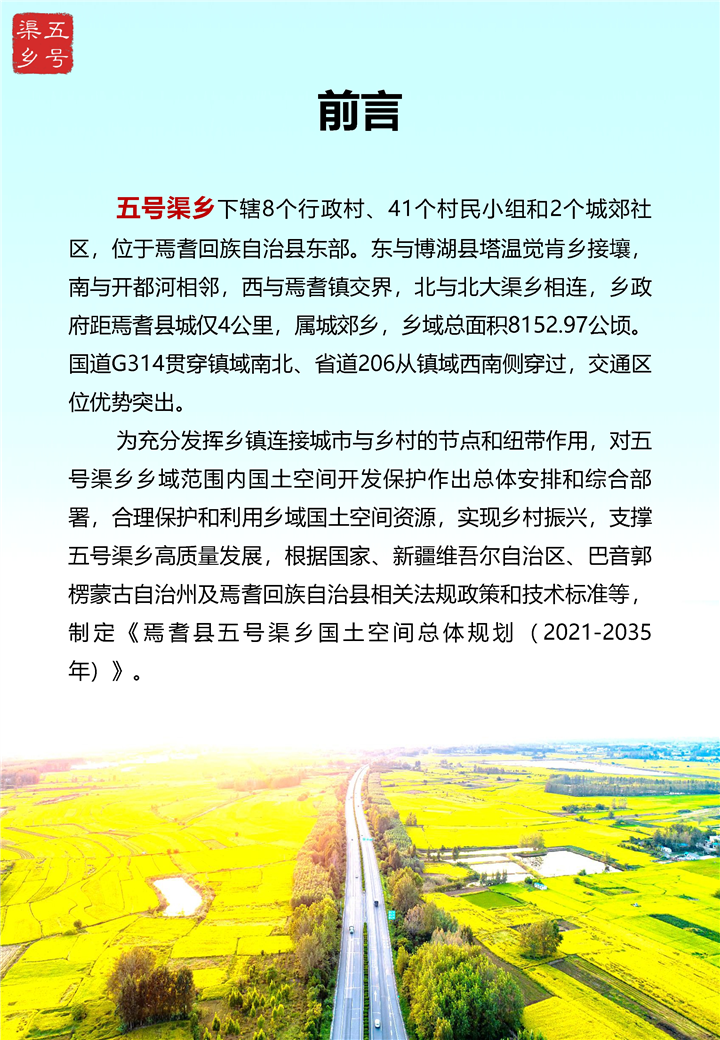 焉耆县五号渠乡国土空间总体规划(2021-2035)草案公示