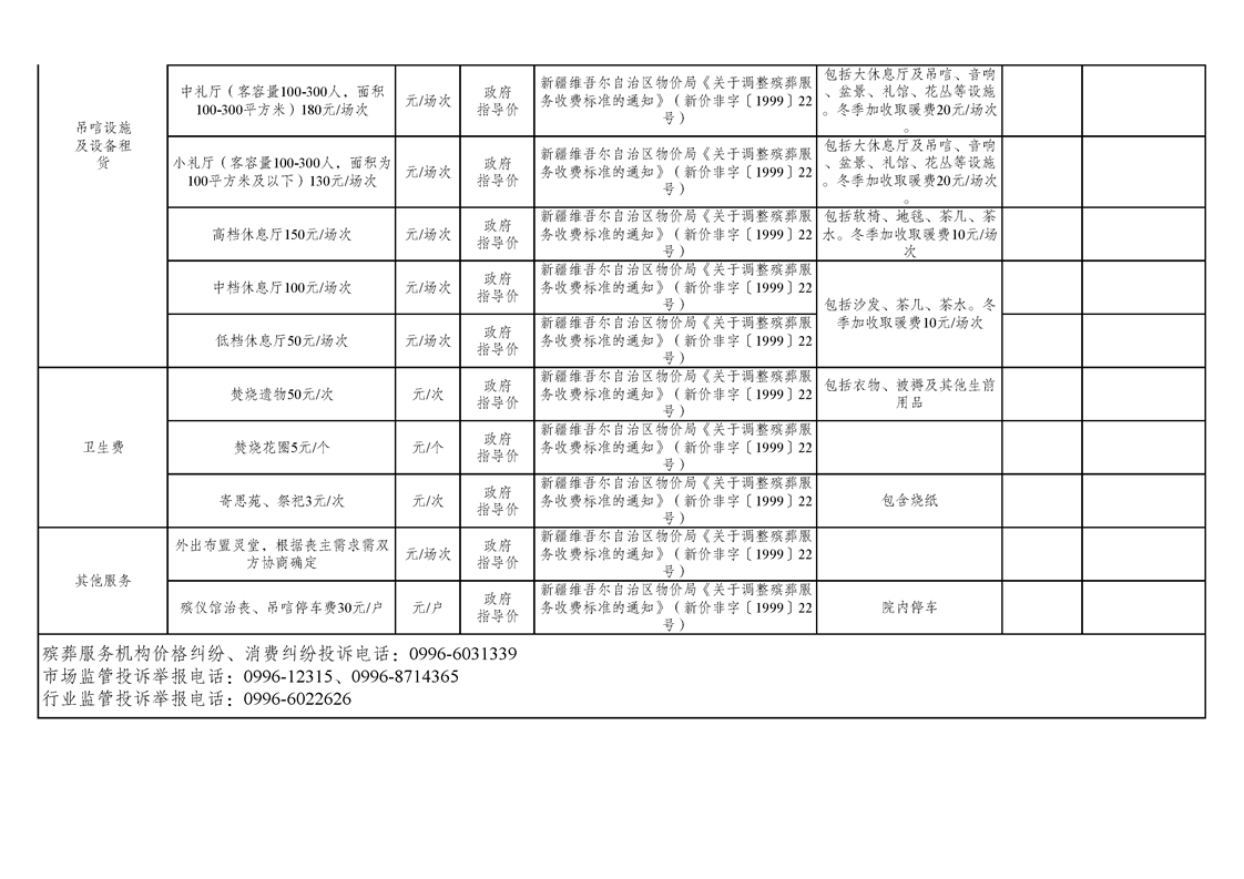 焉耆县殡仪基础服务收费标准清单