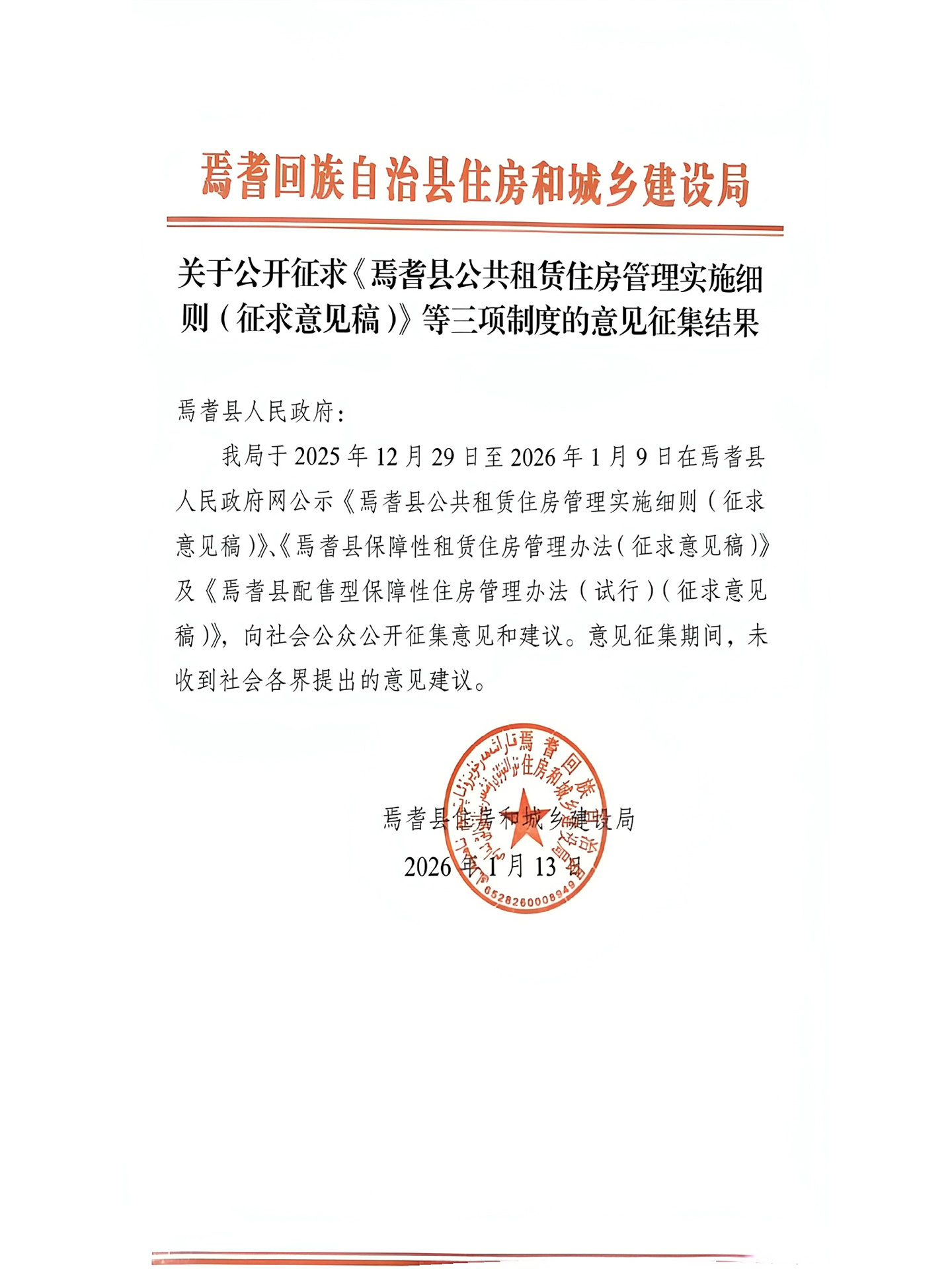 关于公开征求《焉耆县公共租赁住房管理实施细则(征求意见稿)》等三项制度的意见征集结果