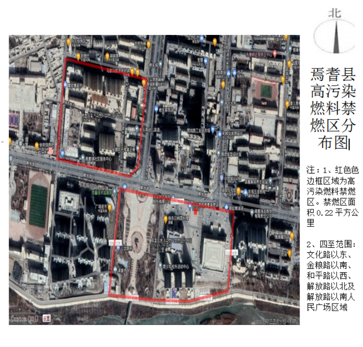 文化路以东、金粮路以南、和平路以西、解放路以北及解放路以南人民广场区域。禁燃区面积0.22平方公里。